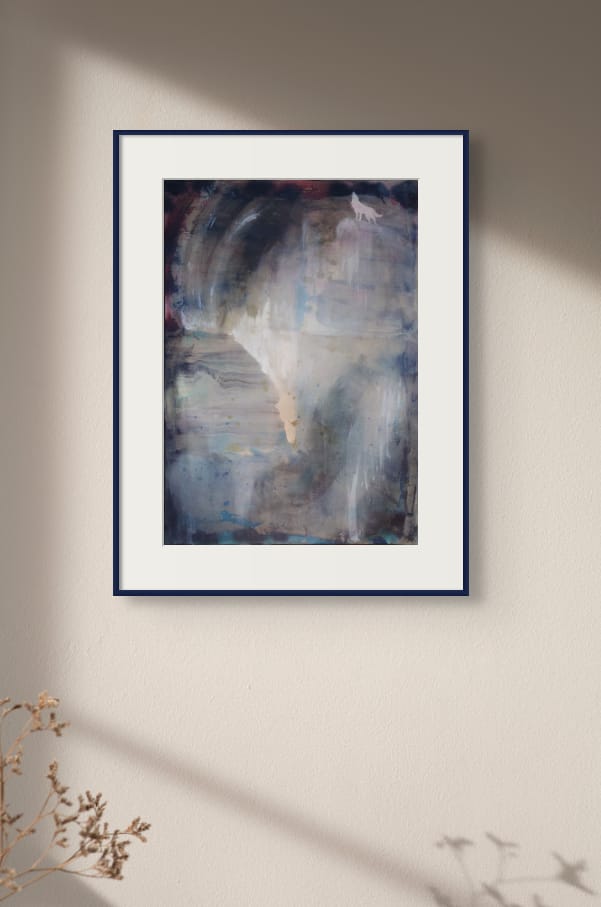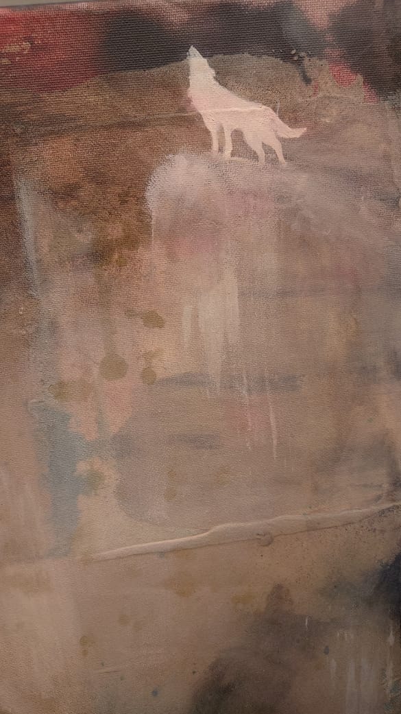 In Brother Wolf, my paintbrush surrendered to the unpredictable rhythm of the medium, allowing the paint itself to dictate the narrative—one that emerged organically as a story of connection across realms.